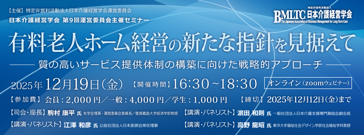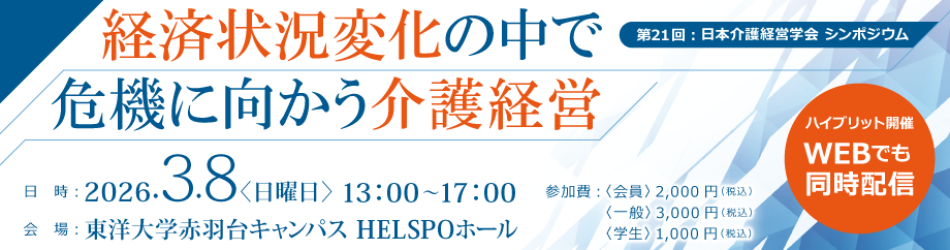 - 2025/08/28 お知らせ 「第21回 日本介護経営学会学術大会」(2025年11月16日(日)開催)