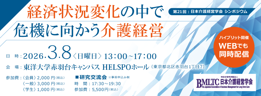 - 2025/08/28 お知らせ 「第21回 日本介護経営学会学術大会」(2025年11月16日(日)開催)